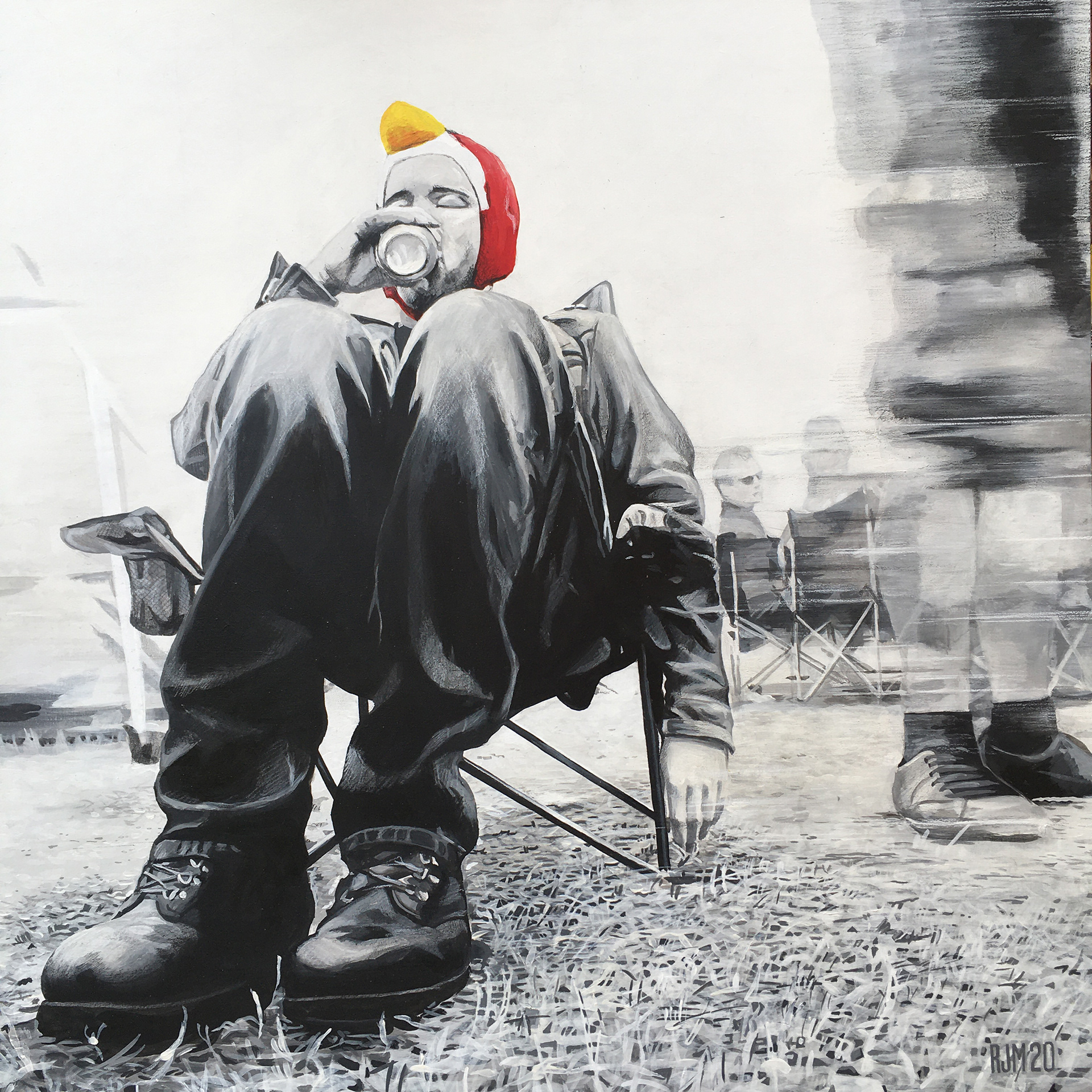 Acrylics and crayon onto MDF.